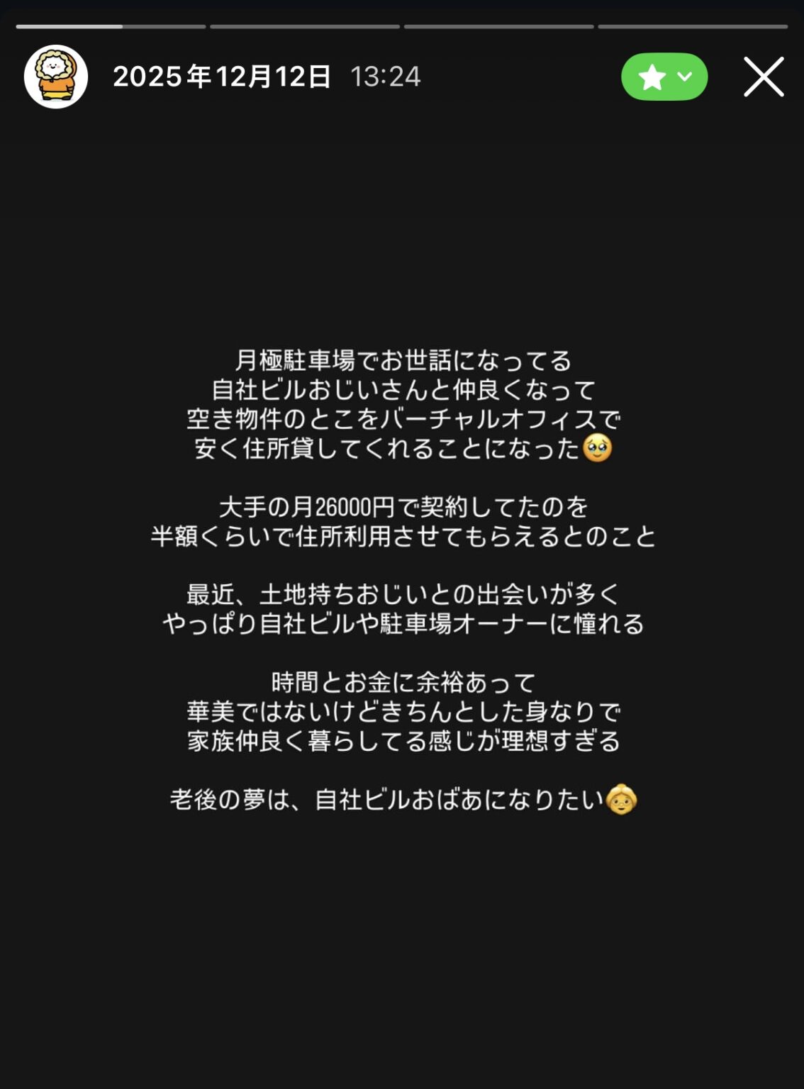 あ、けど自社ビルおばさんになりたい夢ができました。